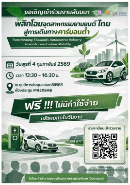 สถาบันยานยนต์ ขอเชิญเข้าร่วมการสัมมนา "พลิกโฉมอุตสาหกรรมยานยนต์ไทยสู่การเดินทางคาร์บอนต่ำ"