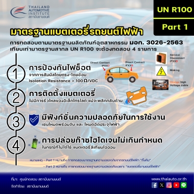 - Part 2 หมายถึง การทดสอบมาตรฐานความปลอดภัยเฉพาะ “แบตเตอรี่ยานยนต์ไฟฟ้า”