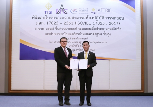 สถาบันยานยนต์หน่วยงานให้บริการด้านทดสอบมาตรฐานทั่วไป มาตรฐานบังคับ และมาตรฐานสากล สำหรับยานยนต์และชิ้นส่วนยานยนต์ ขยายความสามารถการให้บริการเพิ่มขึ้น โดยได้รับการรับรองความสามารถห้องปฏิบัติการทดสอบ มอก. 17025-2561 และได้รับการจดทะเบียนเป็น องค์กรกำหนดมาตรฐานประเภทขั้นสูง จากสำนักงานมาตรฐานผลิตภัณฑ์อุตสาหกรรม เพื่อยานยนต์แห่งอนาคต